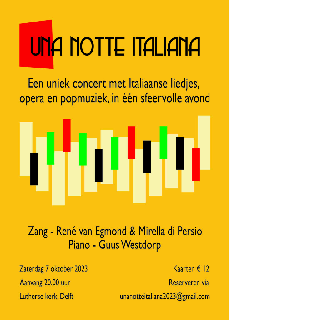 Een concert met Italiaanse liedjes, klassiek en pop, in één sfeervolle avond in de Lutherse kerk in Delft op zaterdag 7 oktober 2023.